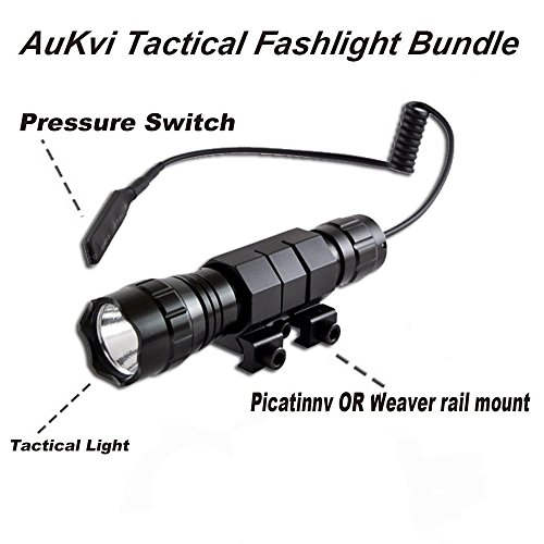 AuKvi 500 Lumen LED Tactical Flashlight with Pressure Switch and Rifle Mount (white light)