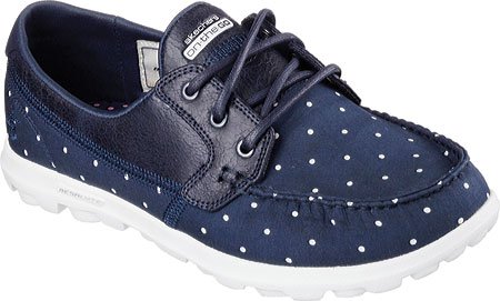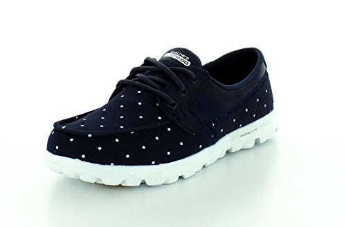 Iconic design and premium materials fuse with innovative SKECHERS GOimpulse Sensor technology to achieve the ultimate in comfort and style. Skechers On the GO - Dotty is a sporty comfortable soft fabric and faux leather upper in a three eye lace up boat shoe with contrast accents.