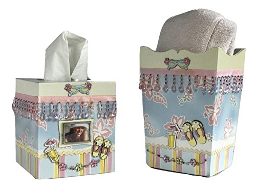 - 2-PIECE SET Order includes a tissue box and an accessory holder. Use accessory box for a guest hand towel or to hold styling accessories like brushes, comb, hand mirror, curling iron, etc. Tissue box has a 1.25” x 1.75” photo frame mounted on front.