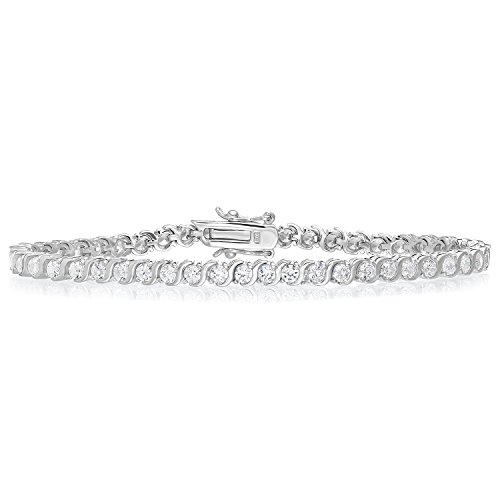 -. Title : Sterling Silver 3 mm 8.0 CTW Round Cubic Zirconia (AA+) S Link Tennis Bracelet - Size 7 1/2"