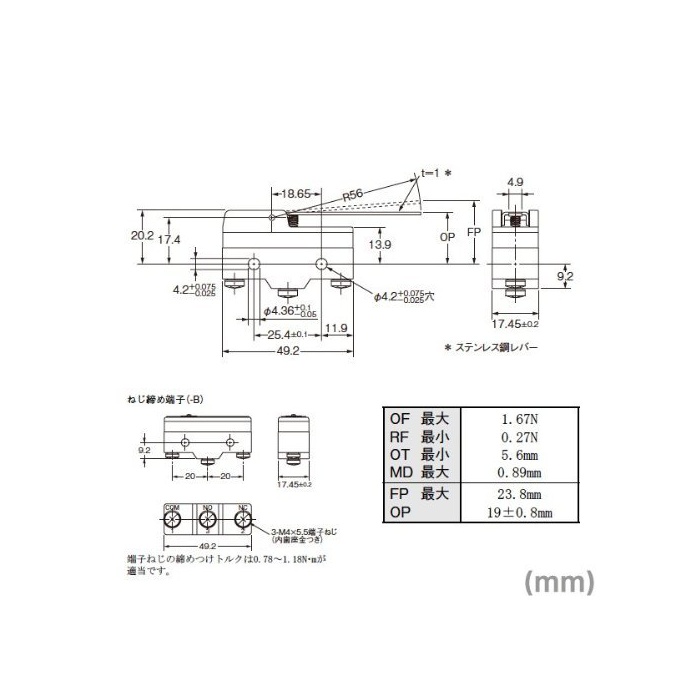 원본상품명: オムロン(OMRON) Z-15GM-B マイクロスイッチZシリズ (逆動作ヒンジレバ形) NN