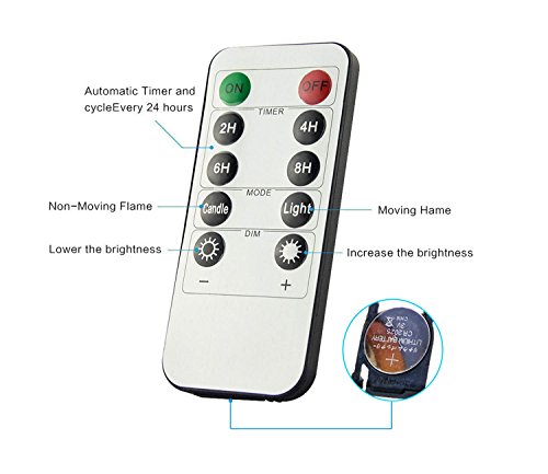 - * Multi-Function Universal Remote: Works with all the candles (same series) at same time or separately. Timer feature allows you to set 2H | 4H | 6H | 8H, timed to automatically turn on and off every day.