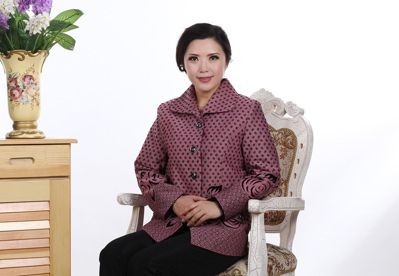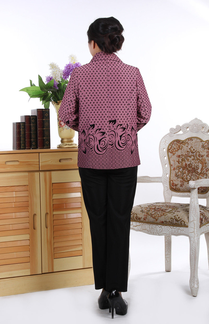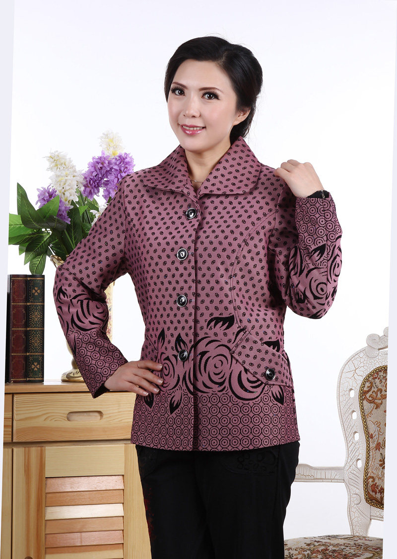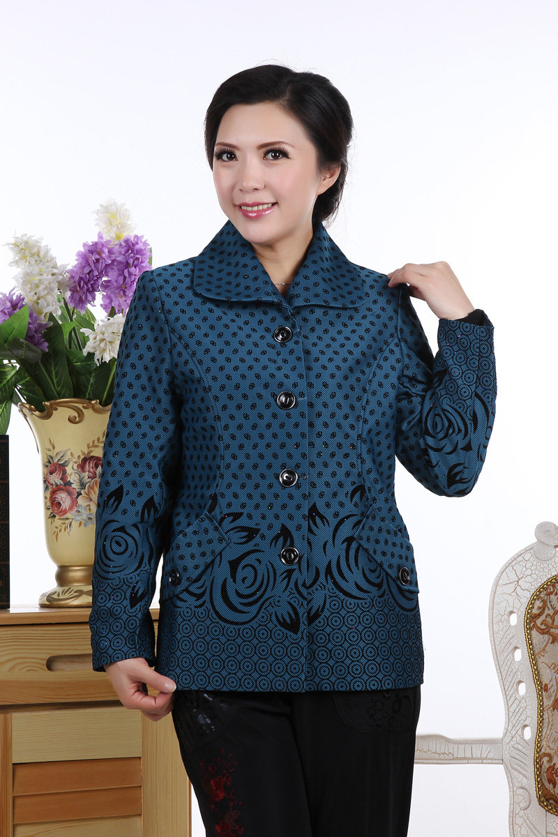 春秋款夹克衫妈妈装中老年外套女装翻领扣子夹克母亲上衣