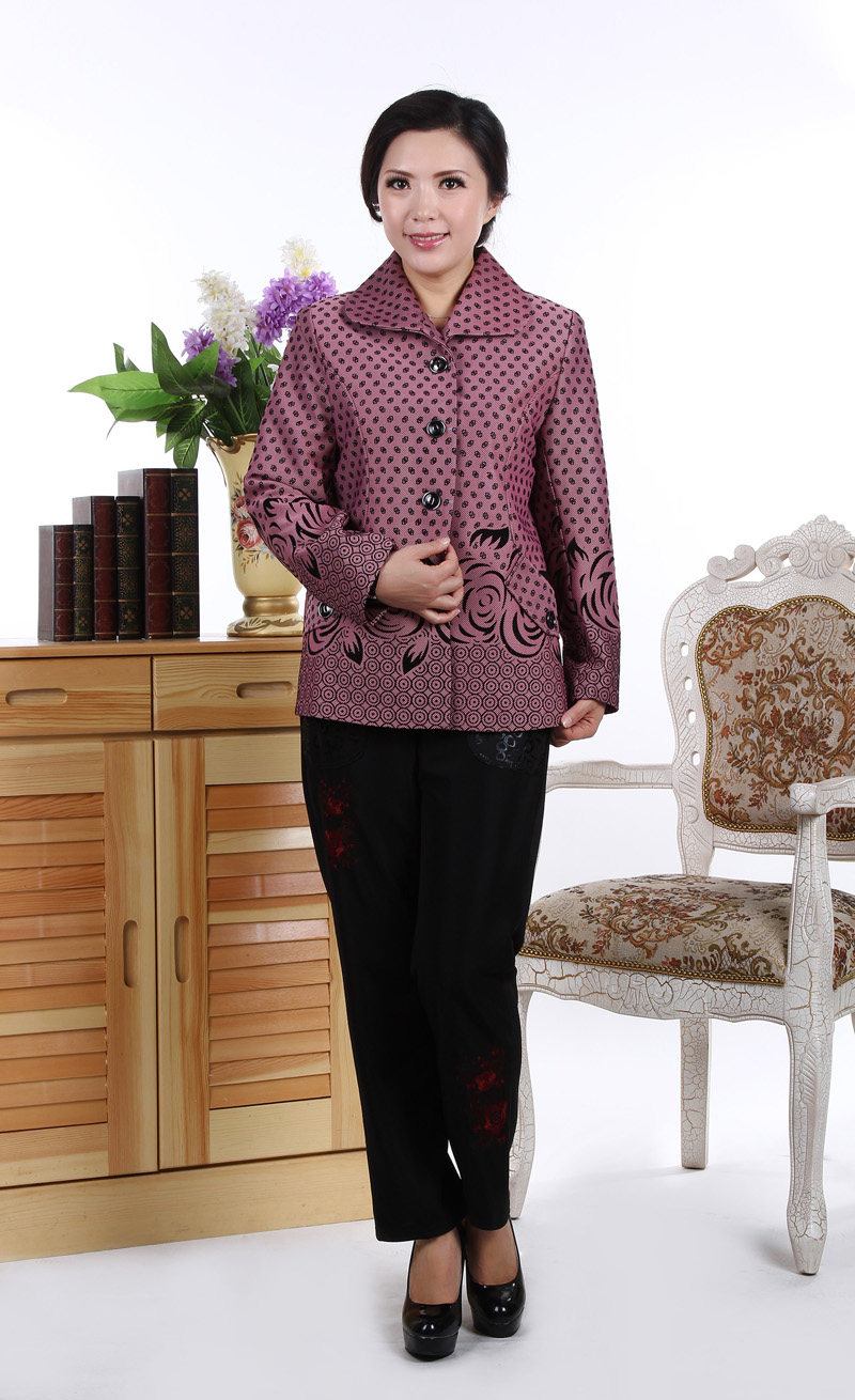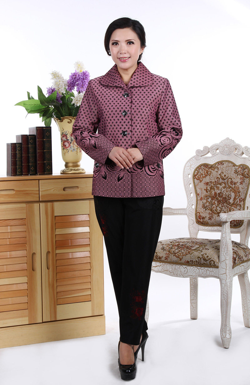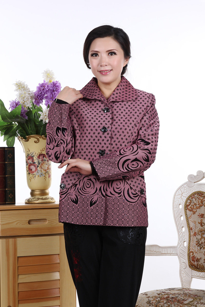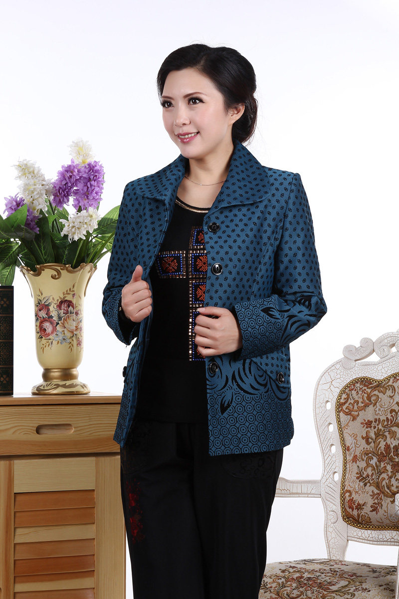 春秋款夹克衫妈妈装中老年外套女装翻领扣子夹克母亲上衣