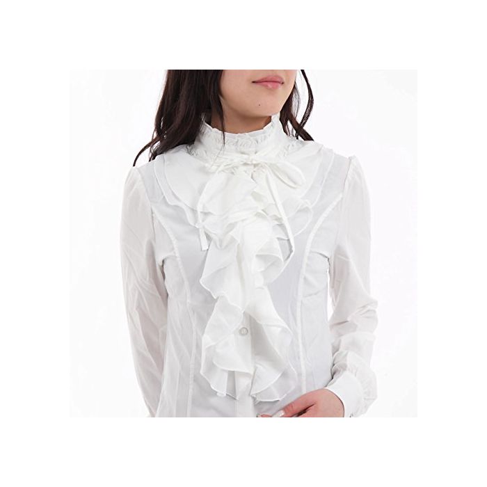 가슴 팍의 프릴이 매우 화려한 분위기를 연출시켜 주는 블라우스입니다