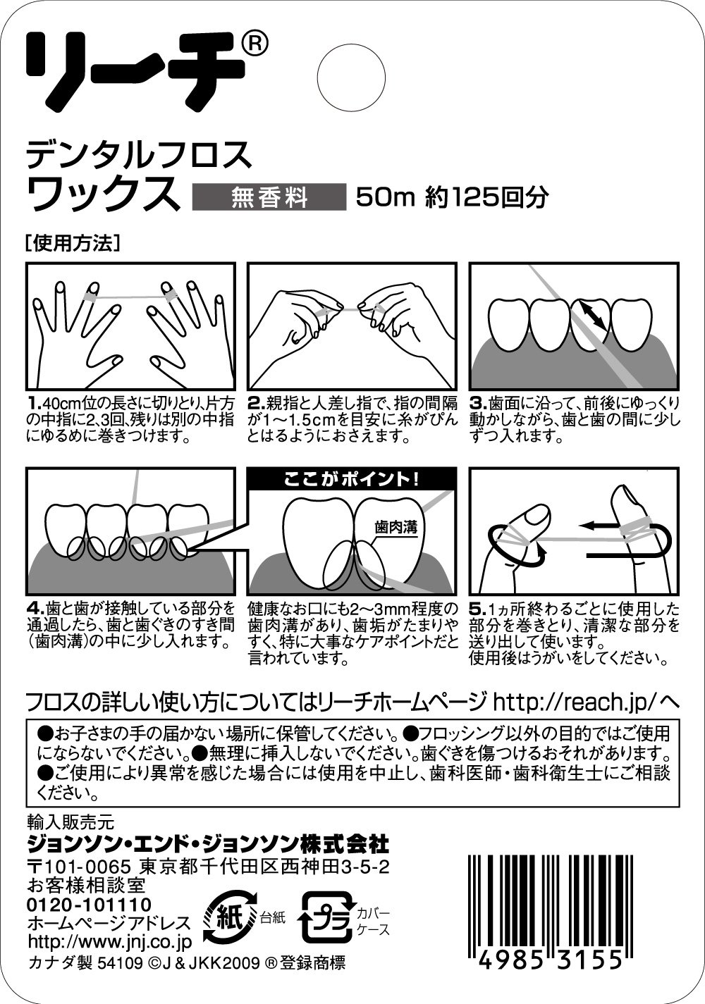 Johnson & Johnson Reach dental floss wax 50m