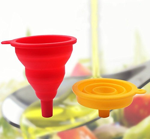 - ★FOLDING DESIGN: The 2 kinds of silicone funnel are foldable,when you use them to pull open,do not use to fold,easy to use;And 2 styles edge have a circular hole design,easy to hang storage.