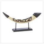 -. Feature : Faux ivory tusk is carved with an elephant family / Green treetops are all along the top of the carving / The end caps add style and are embellished with sparkling gems / 16.5 x 2.75 x 8 inches tall, Polyresin with felt pads