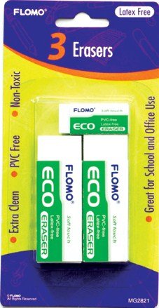 3 Eco White Erasers w/Wrap ( School Supplies )