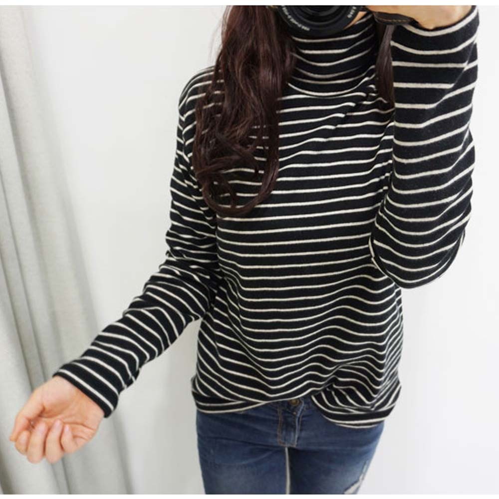 しなやかな素材で仕上げた素肌に着てもストレスフリーのボーダー柄トップス