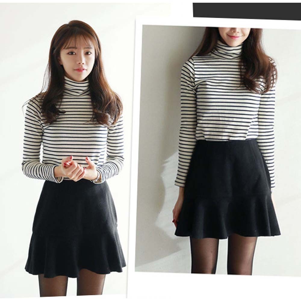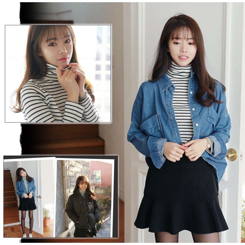 落ち着いた配色でコーデに馴染むタートルネック仕様、暖かくてナチュラルスタイル