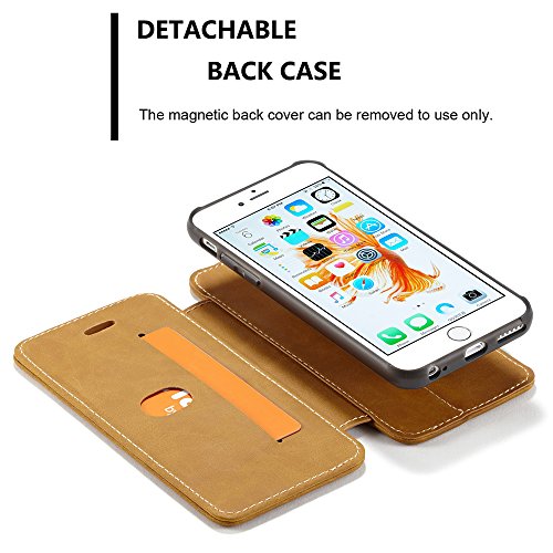 Leather Wallet Phone Case Protective Flip Cover Flip Cover Magnetic Back Case This back case is removable from the flip cover via a strong magnet. 1. For flip cover part, there is one card slot for storage and kickstand feature. The earpiece hole on cover is precisely cut so that you can answer your phone with cover on. 2. For back case part, there is a magnet at the back to attach with the flip cover. It's quite convenient to stick on or remove from the cover. You can also stick this back case on your car mount via its magnet. One magnet ring bracket is included in the package. You can stick it on your back case for a kickstand feature. Precise cut so it's easy to access to all buttons, change the volume, answer a call,charge your battery,take a picture camera and listen to music with the back case on. Material Made of High Quality Leather, durable and soft feeling. Accessory This flip cover case includes 1 strap and 1 magnet ring bracket. 0