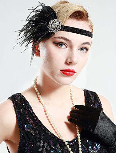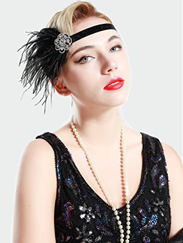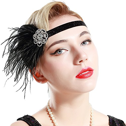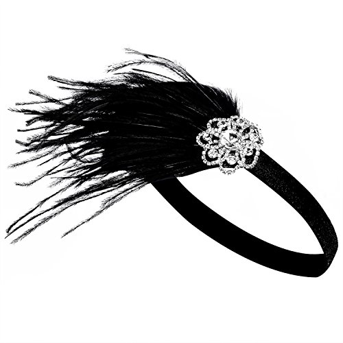 BABEYOND 1920s Flapper Headband Great Gatsby Headpiece 20s Art Deco Headband Ostrich Feather Headdress Vintage 1920s Flapper Gatsby Accessories (Black)