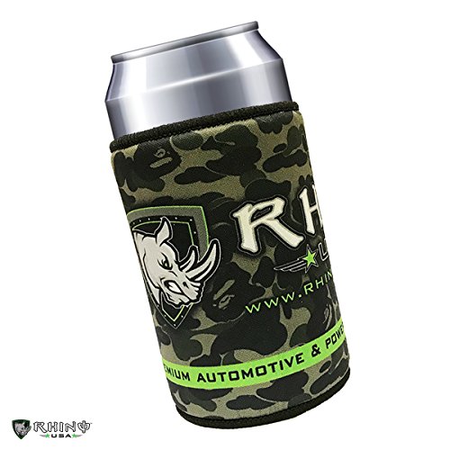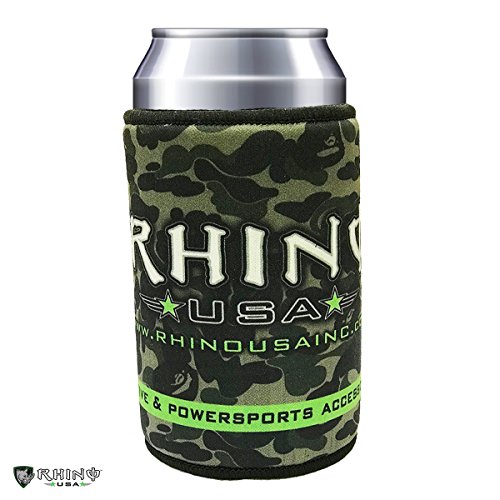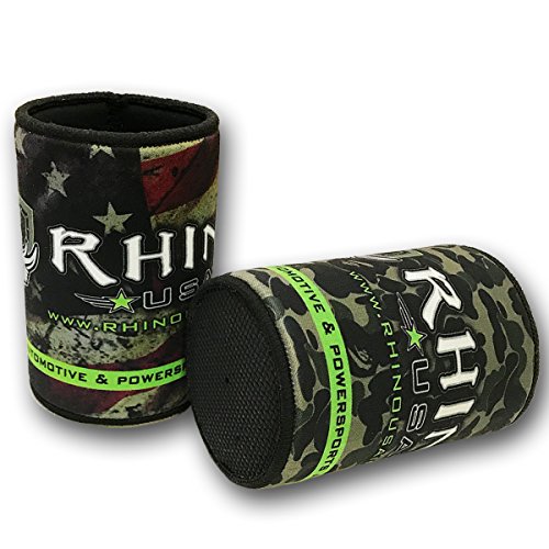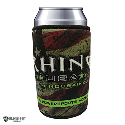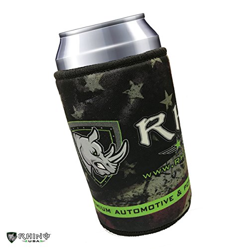 Rhino USA Neoprene Can Cooler, Non-slip Rubber Base & Premium Stitched Edges, Best Coolie to Keep Drinks Ice Cold - Camo or American Flag Design