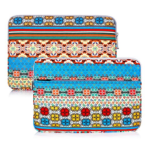 -. Feature : FASHION BOHEMIAN STYLE PERFECT GIFT - Personalize your laptop with its own unique style. Emphasizing the aesthetics and safety of your laptop computer at the same time in the design. / WATER RESISTANT & MOISTURE PROOFING - Made of waterproof Canvas fabric,which obstructs water and vapor effectively. Don't worry about getting your laptop computer and accessories wet from splashing water or rain. You can just place the case right by your side when having coffee, tea or juice. And securely carry the case with you even if you come across a rainy day. / FRONT POCKET STORAGE & QUALITY ZIPPER - Extra pocket in front, enough space to keeping document, charge, mouse cable, cellphoone, memory cards, external hard drive, pens etc. Top-loading zipper on the sleeve glides smoothly and allows convenient access to your laptop. / SHOCKPROOF FLUFFY FLEECE FABRIC LINING - Extra soft,The anti-static, Featuring three layers' protection with waterproof layer, shockproof layer and fluffy fabric inner layer, the product can effectively absorb impacts and reduce damages caused by accidentally bumping, and protects your notebook from scratches. / ABOUT THE SIZE AND COMPATIBLE - Size: Exterior: 12.8" x 1.2" x 9.1" & Interior: 12.5" x 1" x 8.6". Compatible with MacBook Air 11.6 / New Macbook 12 inch / Surface Pro 4,3 / Acer / Asus / Dell / Fujitsu / Lenovo / HP / Samsung / Sony / Toshiba, suitable for Acer C720 Chromebook/ Acer Aspire E3-111 / Asus X205TA / ASUS Q200E / HP Stream 11 Laptop / HP Pavilion X2 / Samsung Chromebook XE303C12. Due to variations in the sizes of different models. please check the dimension before purchase.