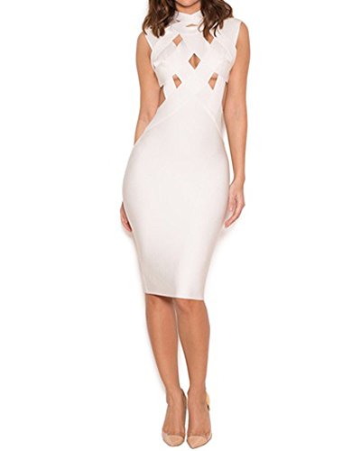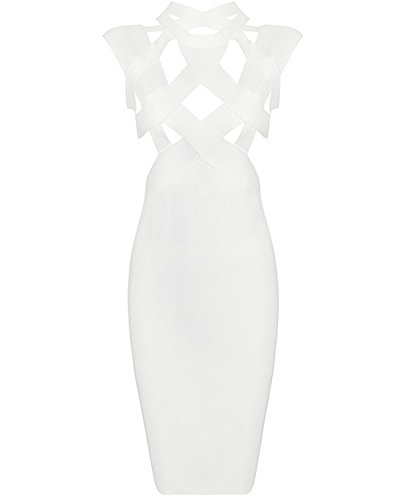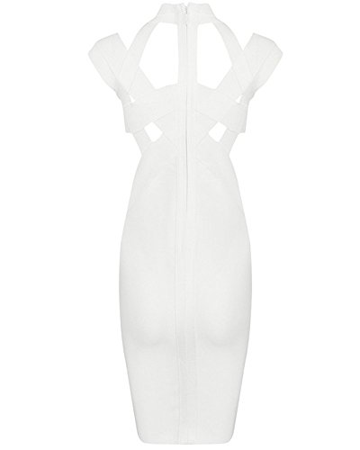 All white vibes are here with the bandage dress. Featuring a high neck design with gorgeous cutouts to the bust area. Cap sleeves, bodycon cut and knee length pencil skirt finish the look. Made from our signature bandage fabric.