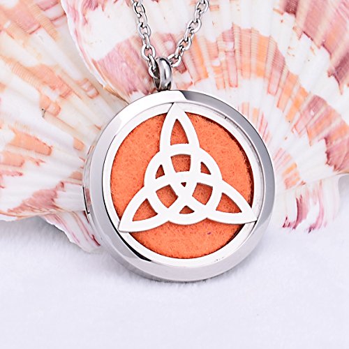 Celtic Knot Aromatherapy Essential Oil Diffuser Necklace Stainless Steel Round Locket Pendant 24" Chain,12 Refill Pads