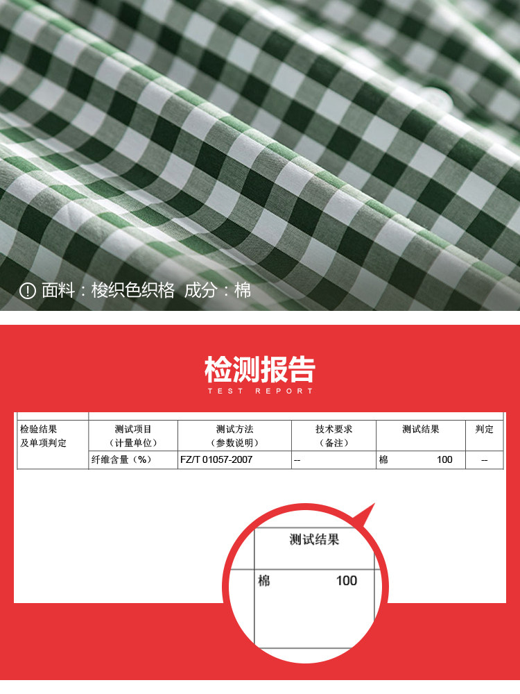 | 面 料:面料1:棉 面料2:棉颜 色:绿格 |
