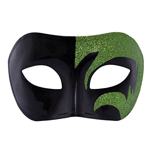 -. Feature : SeasonsTrading custom made Mystic style black Venetian half masquerade mask made of strong durable plastic with green glittery design / Black ribbons attached for easy wear / One size fits most / It's great for masquerade, Mardi Gras, Halloween, prom dance, wedding, and costume party! / Mask also available in other colors (sold separately). Search SeasonsTrading Mystic Venetian Masquerade Mask for details.