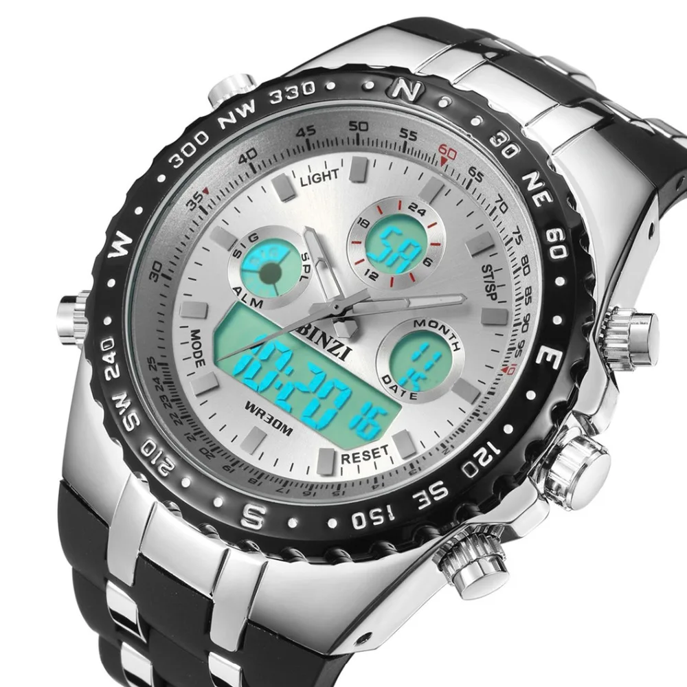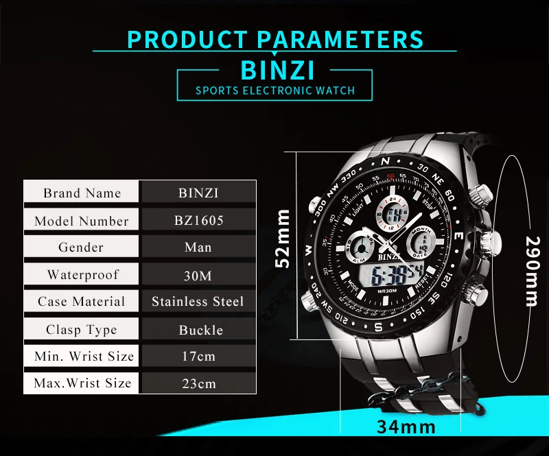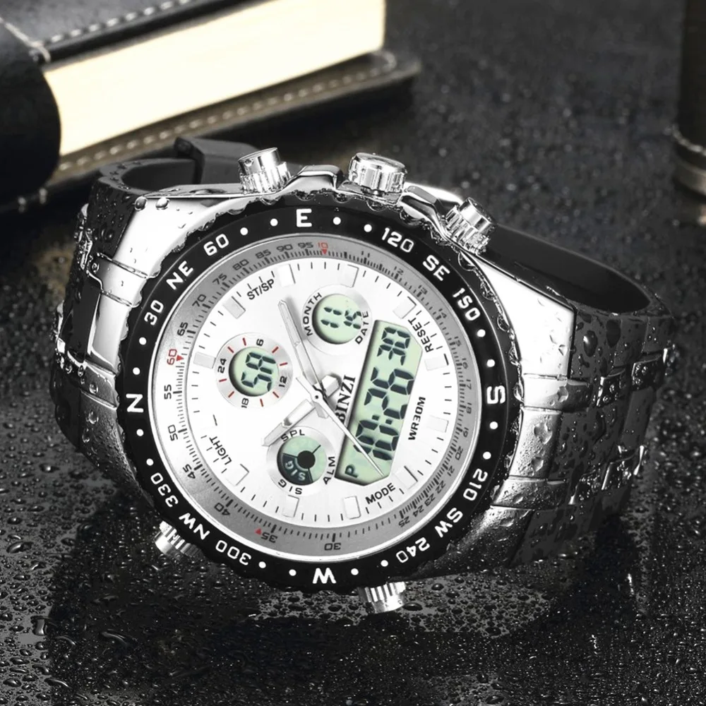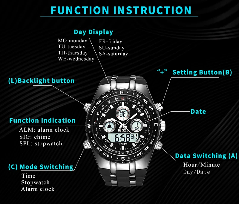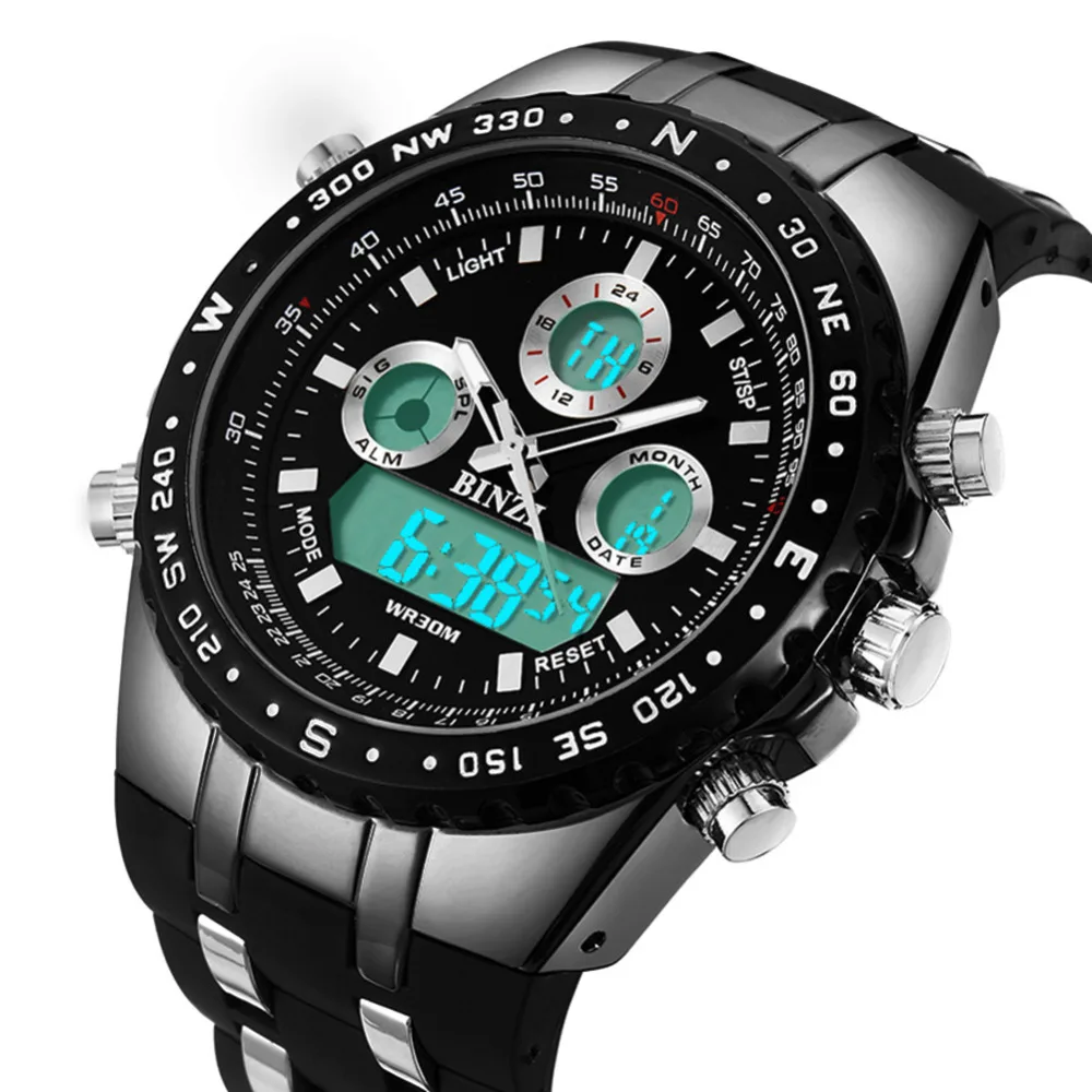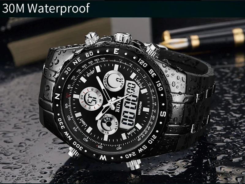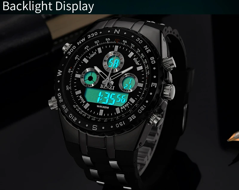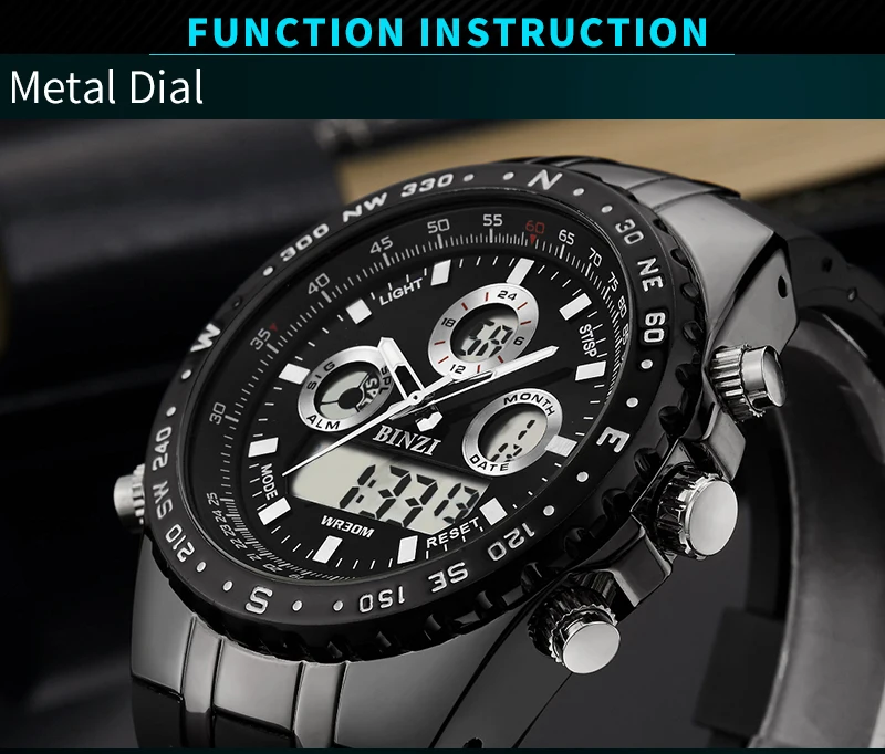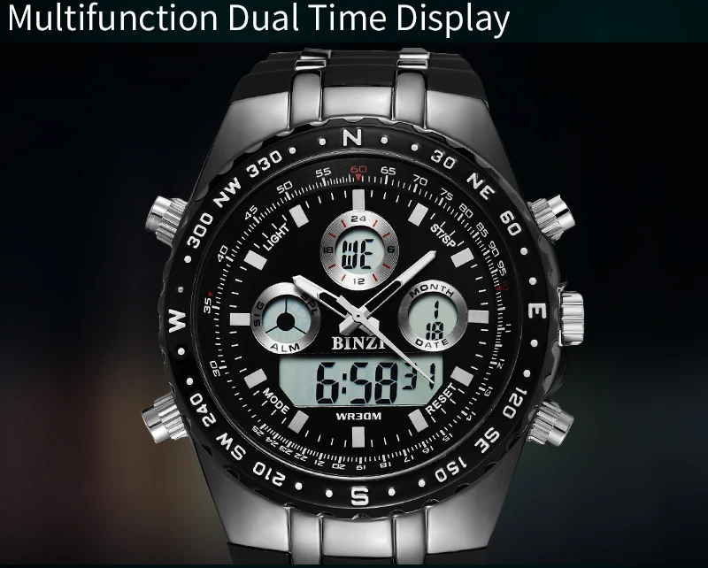 Feature:Water Resistant,LED display,Stop Watch,Back Light,Complete Calendar,Week Display,Shock Resistant,Alarm,Chronograph,Repeater