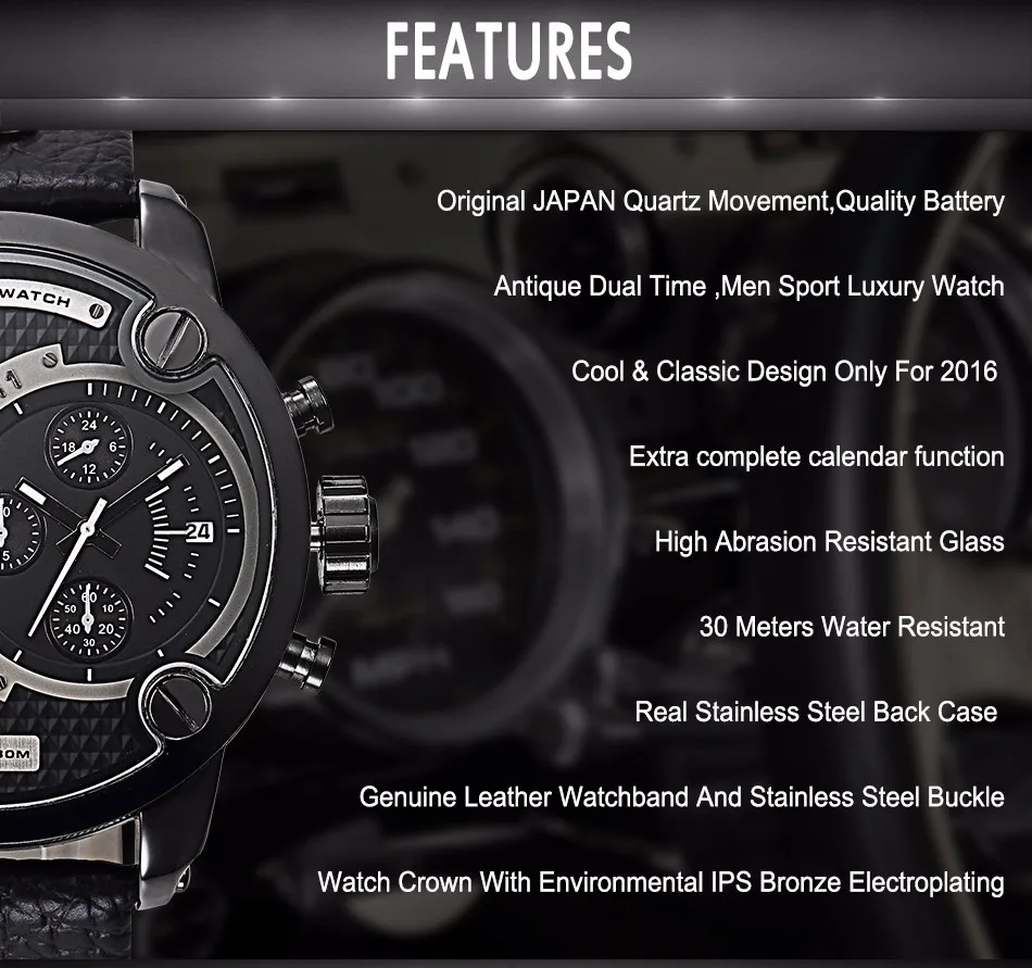 Feature:Water Resistant,Shock Resistant,Multiple Time Zone,Auto Date,Swim