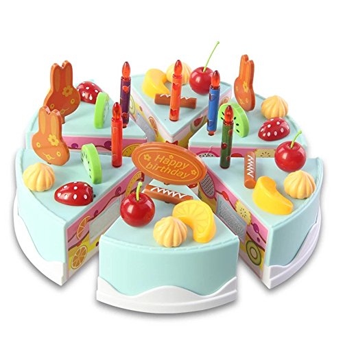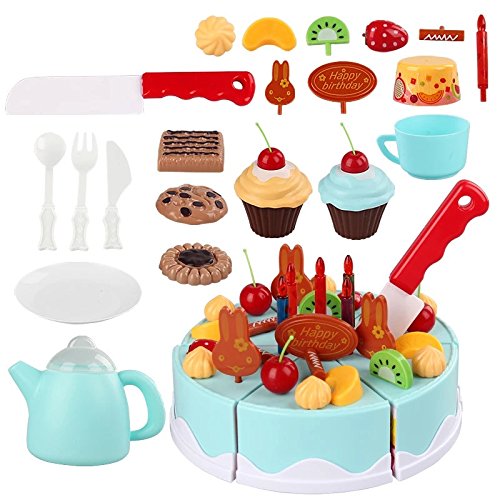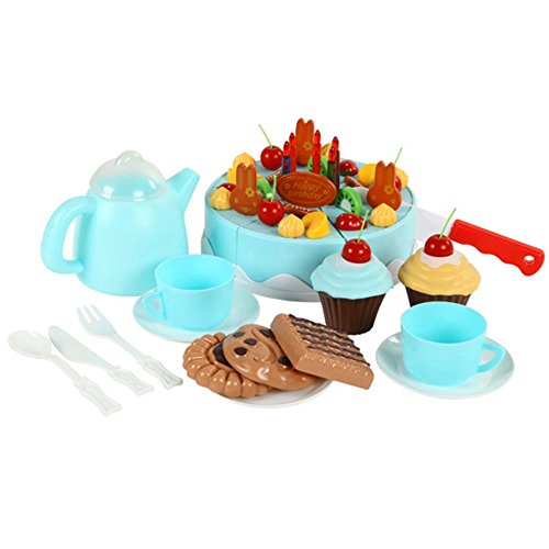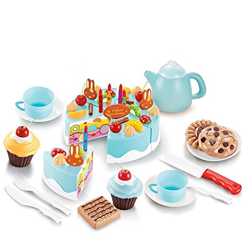 -. Title : Kisoy 54Pcs Birthday Cake Cosplay Kitchen Slicing Cake Eductional Toy Set for Kids Girls(Blue)