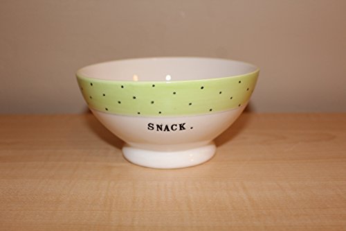Rae Dunn by Magenta typeset SNACK polka dot footed cereal bowl with green rim