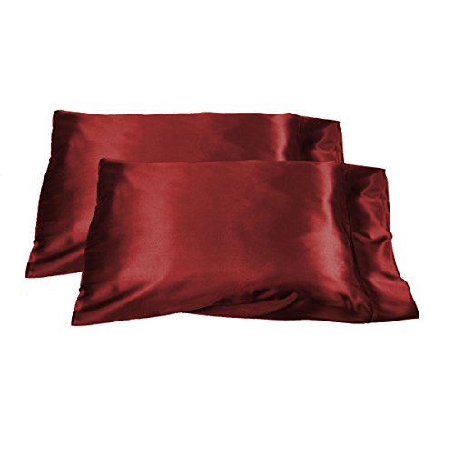 SET OF 2 SATIN PILLOWCASES / SHAM - STANDARD SIZE - CHOICE OF COLORS (Burgundy Red)