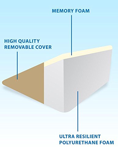 - Feature : TWO-LAYER DESIGN: 1 inch premium memory foam top layer combined with firm foam base provides the ultimate balance of support and comfort / ERGONOMIC DESIGN: Cushion helps align the torso by correcting posture, also can be used to elevate legs and increase circulation / VERSATILE: Commonly used for reading, watching tv, sleeping, relaxing, acid reflux, allergies, poor circulation, back and neck problems / MACHINE WASHABLE: Breathable velour cover is easily removed with zipper for simple cleaning / LIFETIME GUARANTEE: We stand by our products with excellent customer service and a lifetime guarantee