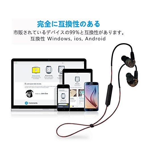 -. Feature : 無線と有線の両用可能なイヤホン:BLUETOOTH 4.1が搭載され、ワイヤレス可能距離10m; MMCXソケットより自由に無線/有線に転換できます。一つ買えば、二種類のイヤホン入手になります。 / Bluetooth4.1、CVC6.1遮音効能付き、素晴らしい低音質。遮音性能と低音質はとてもいいので、騒音の大きい場所でも音楽等を楽しめる。イヤホン自体はマイクを搭載、手元で音楽再生、一時停止と音量調整が可能です。通話にも対応 / 対応性が広い。iPhone,Android,Samsung,Huawei,MP3,iPad,パソコンなどに対応可能なイヤホンです。このイヤホンを持てば完全に対応できない悩みを捨てます。 / イヤチップはゴム式で、柔軟性が非常にいいです。快適さのあるフィット感を提供します。イヤホン自体は軽くて、長時間の使用でも快適に使えます。散歩、ジョギング、アウトドア、旅行、ゲームなどにいつでも楽々! / 防水防汗、長時間再生可能なイヤホンです、85mAhバッテリーは連続再生時間は4-5時間または200時間のスタンバイを提供し、私たちは心の保証24ヶ月の平和を提供しています。