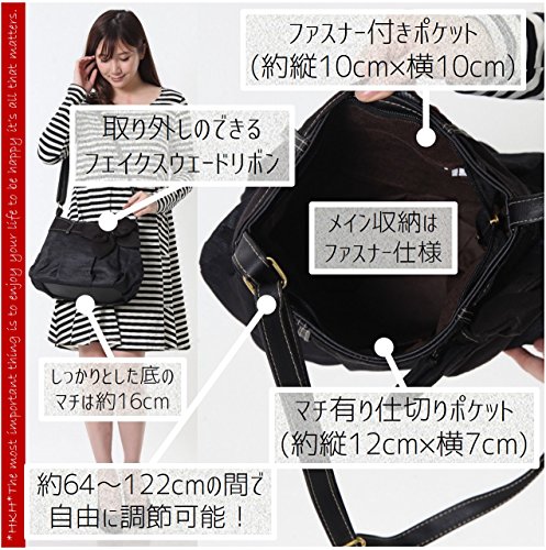 -. Feature : 少し小ぶりで丸みを持たせたフォルムが特徴の、愛らしいショルダーバッグでお出かけを楽しく♪ / キュートなくびれのあるフェミニンなデザインな雰囲気の漂うフェイクスウェードがアクセントです☆に、トレンドのデニム生地と、クラシカル / 女の子が肩からさげる時にさらに可愛く見えるよう、ころんと丸いデザインにこだわりました♪フロント面には、取り外しのできる可愛いリボン付き! / 気分に合わせてリボンを外して、スカーフやバッグチャームなどに変えてアレンジも楽しめます♪ / サイズ:縦26cm×横(メイン開閉口26cm・底部分28cm・最大幅44cm)×マチ16cm   重さ: 320g   ショルダーベルト:64~122cmの間で自由に調節が可能。(幅2cm)   メイン開口部:ファスナー