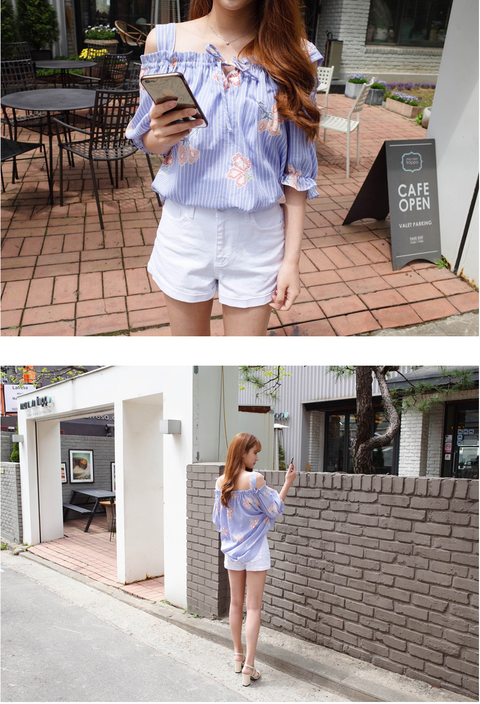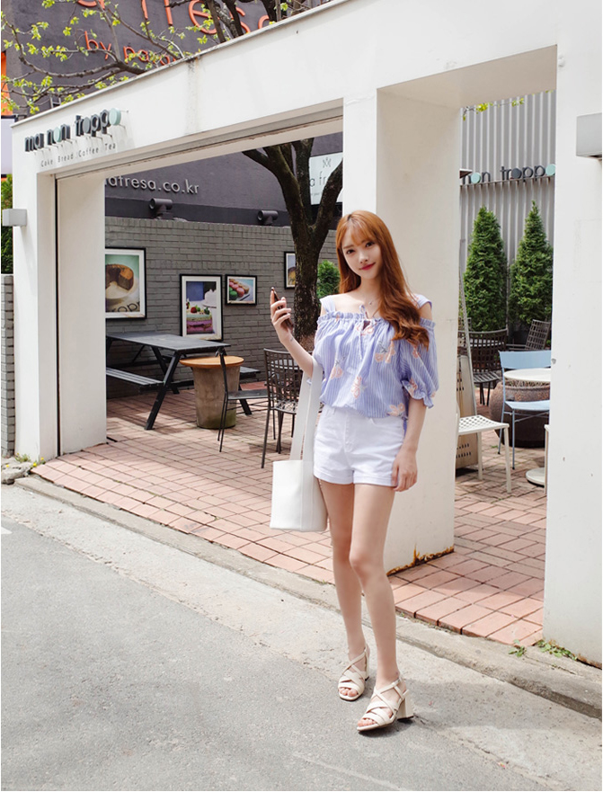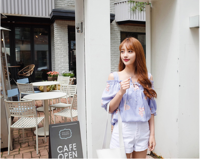 이번시즌에 오프숄더디자인의 블라우스들이