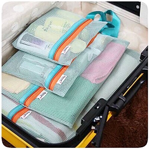 -. Feature : S: 7.01 * 8.46 inches;M: 7.87 * 10.24 inches;L: 12.60* 10.04 inches;XL:15.35* 11.81 inches / Material:Mesh Nylon / Helps to keep the stuff in order, easy to find. / Comfortable material-mesh nylon, easy wash and carry,can reuse. / pouch bags organizer for pack travel stuff,clothes,towels,accessories, etc.