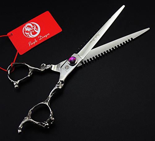Purple Dragon 7.0" Professional 440C Stainless Steel Barber Scissor and Thinning Shears - Personalized Design Perfect for Hair Stylist