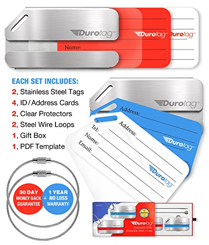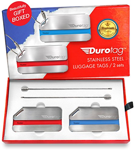 Durotag stainless steel luggage tags are presented in a beautiful box - sure to delight family friends. It's the practical answer to every traveler's needs.