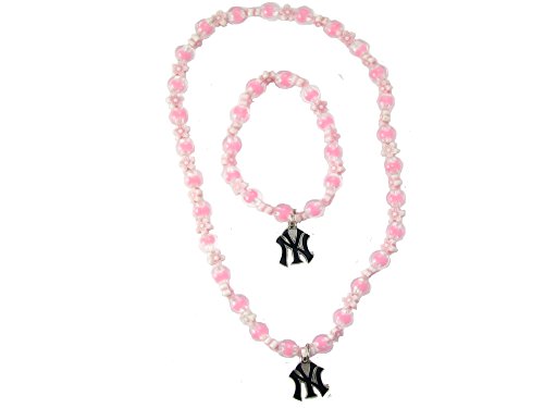 -. Feature : New York Yankees girls pink plastic beads with enamel charm / stretch bracelet and necklace set. / Necklace is approximately 15" and the bracelet is approximately 6". They both stetch. / Charm is approximately 3/4" x 3/4". / Makes the perfect gift for the young baseball fan in your life.