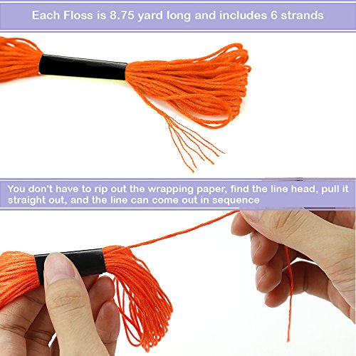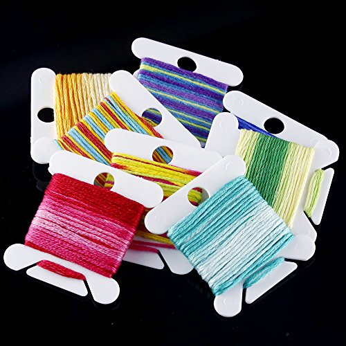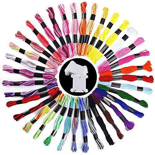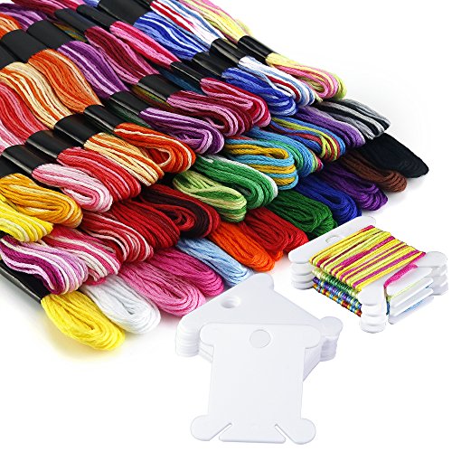 -. Feature : Each package contains 36 skeins of 875 yards (8 m) 6-strand Cotton Floss; 12pcs floss bobbins / 36 colors, contain 12 roll solid color floss: white, black, yellows oranges, reds, lavenders, blues, gray, pinks, turquoises, watermelons and greens. 24 roll color-coded gradient ramp / Available in tie dye color / Made of 100 percent mercerized cotton / Perfect for all types of craft and needlework projects, friendship bracelets and more