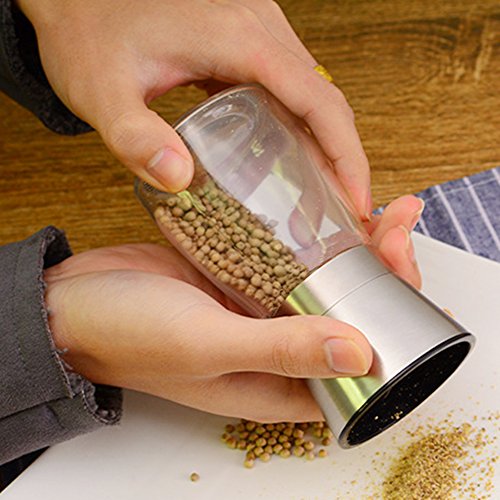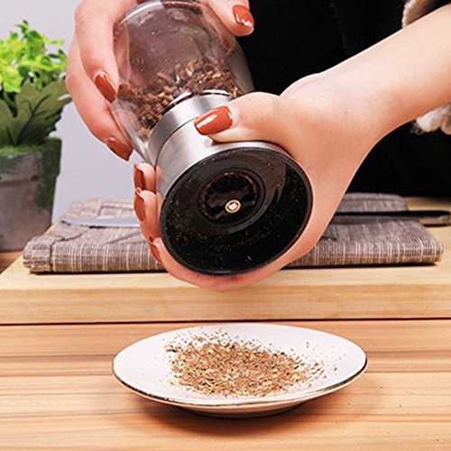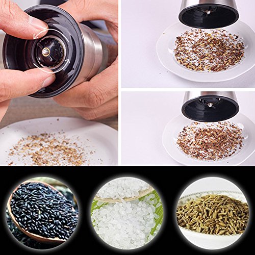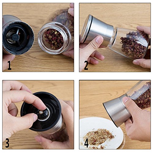 ·Easy to Use:Thoughtful grinding mechanism on the top of the grinder,make sure the salt and pepper only on your food,A plastic knob let you easily adjust from a fine to coarse grind
