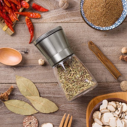 ·Easy to Refill:Standing about 5 inches tall and holding 3/4 cup of spices,you do not have to refill constantly with being bulky,the clear glass will show you the process clearly,the top wide opening will not make you refill with mess