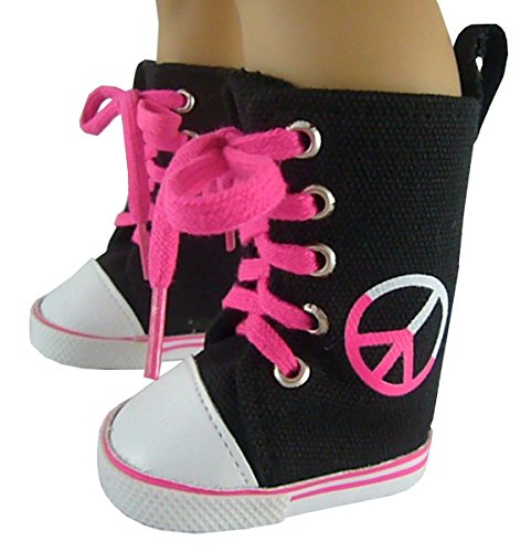 -. Title : Black Peace Sign High Top Sneakers for American Girl by Doll Clothes Sew Beautiful