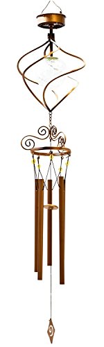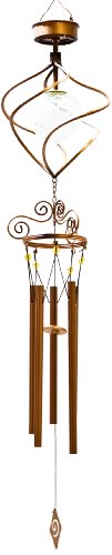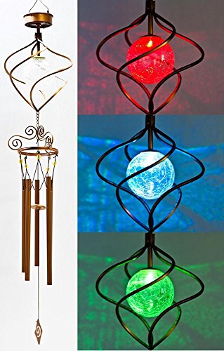 Studio : Headwind Consumer Products Publisher : Headwind Consumer Products Binding : Lawn Patio Product Description Solar Wind Chime- Color Changing Spiral Spinner. Green/Blue/Red rotating LED light. Wind Chime lasts up to 8 hours on a full 8-hour charge. Lighter chime setting option. Rechargeable solar AA Ni-CD battery Included . Also runs on regular AA batteries. On/Off switch. Automatically turns on at dusk and off at dawn. Height: 20". 0