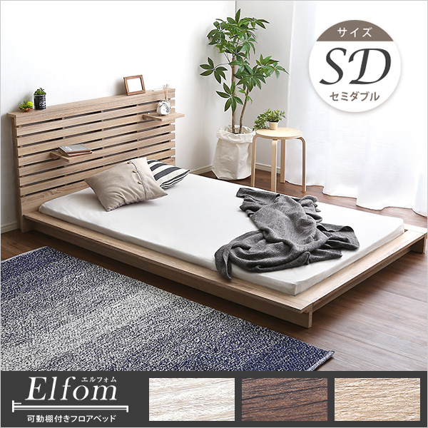 ●スリムなヘッドボードには2枚の可動棚をお好みの位置に配置可能!