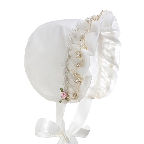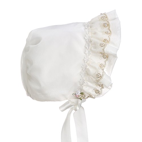 Binding : Apparel Product Description A bonnet is any of a wide variety of headgear for both sexes-most often female-from the Middle Ages to the present.As worn by women and girls,bonnets were hats worn outdoors which were secured by tying under the chin, and often which had some kind of peak or visor,took the place of protection from sun,prevent wind-chapping,hold the hair in place, protect styled hair or keep it tidy,the term has long been popular in both civilian life and in the Royal Regiment . Baby Bonnets are a time old tradition that carries into present day because of their elegance and functionality. They're offered in small to large sizes then tie at the chin with two silk ribbons for a more secure and comfortable fit. Carry the tradition in your family with a bonnet from Hanakimi you can't find anywhere else. For parties and photos, choose from baby girl bonnets for the perfect accessory to accent wisps and curls. Lace, netting, beads and bows add just the right touch to these handmade bonnets. XXS/Newborn Fit for 0-3 Months, XS/3M Fit for 3-6 Months, S/6M Fit for 6-12 Months, M/12M Fit for 12-24 Months, L/24M Fit for 24-36 Months, XL/36M Fit for 36-48 Months. 0