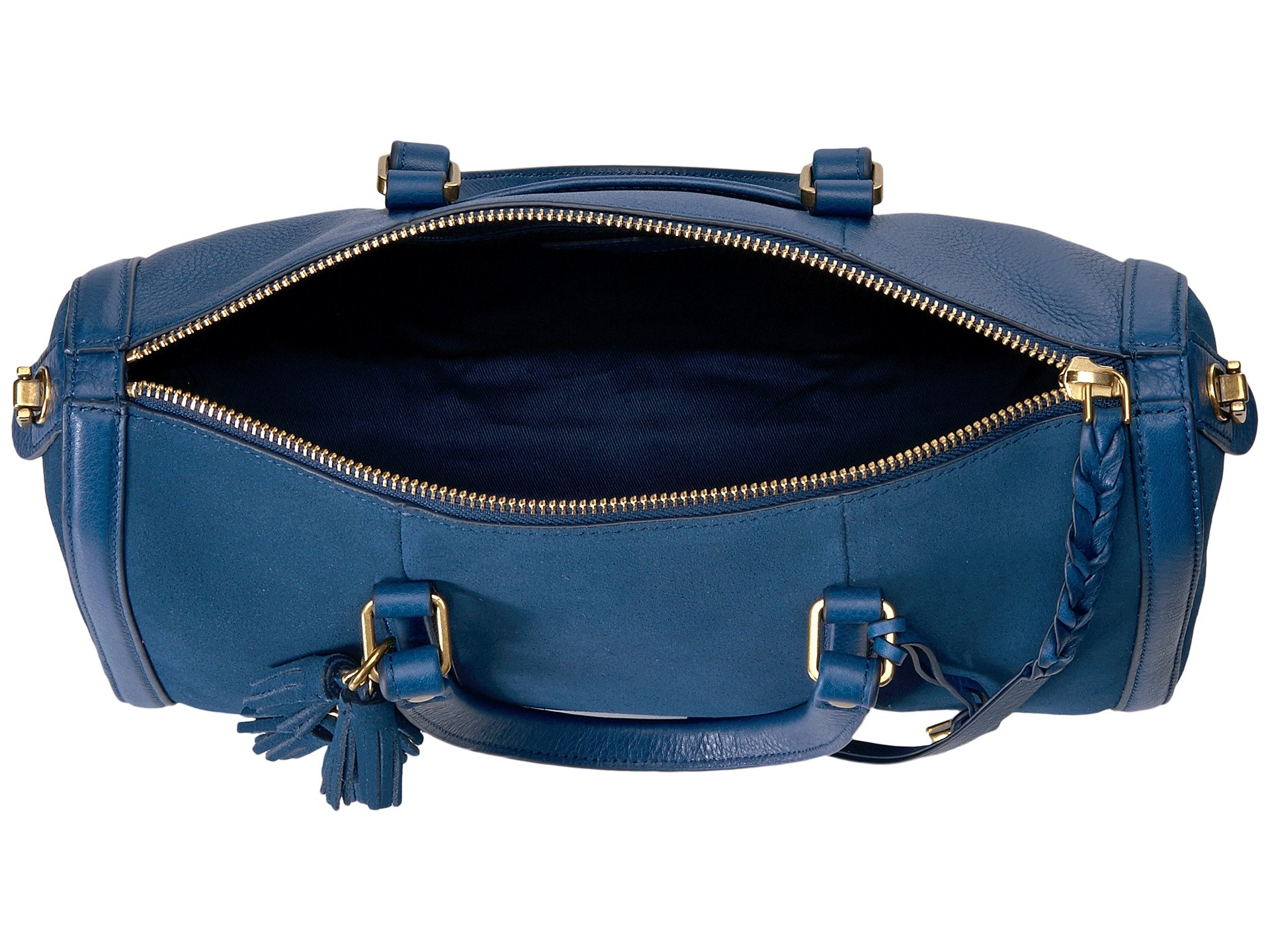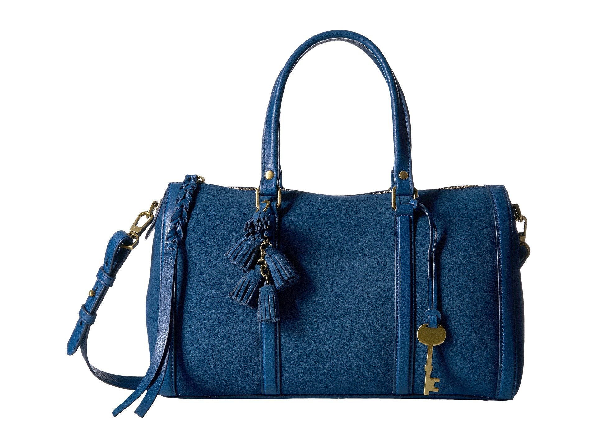 | Product Information SKU: #8961342You'll have charismatic style with this stunning Fossil? Kendall Satchel.Made of leather and textile. Zipper closure.Two carrying handles with a detachable, adjustable crossbody strap.Exterior features a slip pocket at the back.Flat base.Lined interior features one zip and one slip pocket.Imported.This product may have a manufacturer's warranty. Please visit the manufacturer's website or contact us at warranty@support.zappos.com for full manufacturer warranty details.Measurements: Bottom Width: 11 1?2 in Depth: 4 in Height: 8 in Strap Length: 47 in Strap Drop: 21 in Handle Length: 14 1?2 in Handle Drop: 5 in Weight: 1 lb 1 oz |
