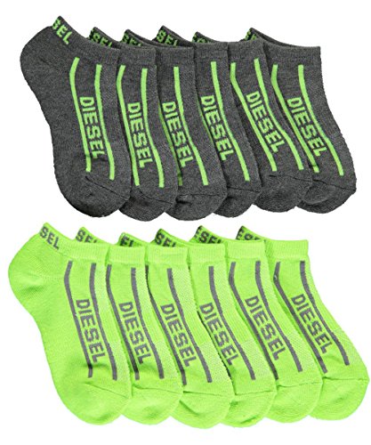 -. Feature : Diesel 6-pack low cut socks / Stretch poly knit / Heel and toe reinforcements / Ribbed elastic cuffs / Patterns as shown