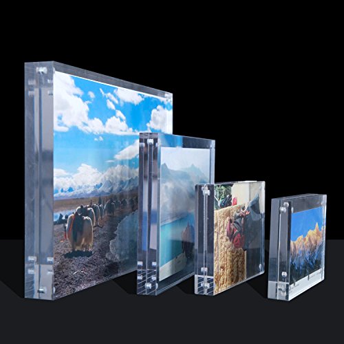 • 3)Thick, Solid and Super Clear:Thicker than some other frames, we designed the frame to be solid and stable in both portrait and landscape orientation. And we used four small and strong magnets to securely hold the super-clear acrylic blocks together. And this particular material allows you to clean up the frame easily.