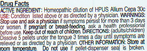 ReleaseDate : 2013-06-22 Studio : OLLOIS Homeopathic Medicines Publisher : OLLOIS Homeopathic Medicines Binding : Health and Beauty Product Description Ollois Allium cepa 30C homeopathic single medicines. Traditionally used to temporarily improve symptoms of runny nose, sneezing, and watery eyes. The dosage is not related to the weight and age of the patient. In general, dissolve 5 pellets 3 times a day until symptoms are relieved or as directed by your health care professional. Contains appx. 80 pellets in each tube, each dose should be placed under the tongue of adults and children, or in the cheek of an infant, where they will dissolve. It is preferable to take apart from meals. No known side effects, no known drug interaction. For informational purposes only, not intended for, and neither should it be taken as a substitute for professional medical advice. Stop use and ask a physician if symptoms persist for more than 3 days or worsen. If pregnant or breast-feeding, ask a health professional before use. Keep out of reach of children. These 'Uses' have not been evaluated by the Food and Drug Administration. 0
