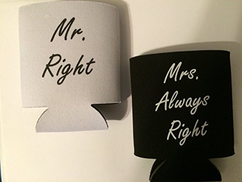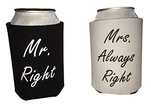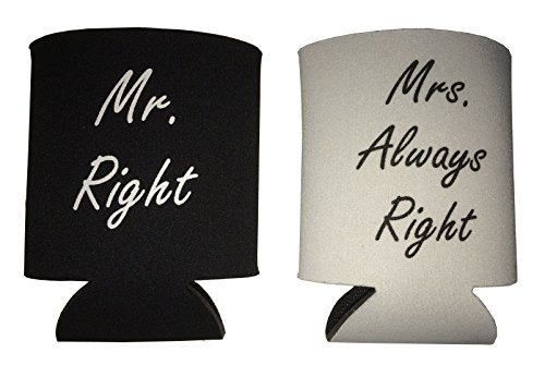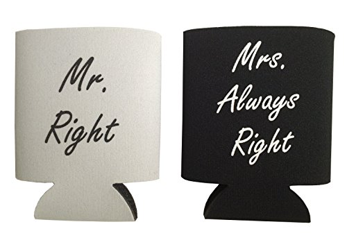 Product Description Wedding gifts...If you are having trouble finding the best wedding gift for the bride and groom as you are getting ready to attend their wedding, look no further! Or, if you are looking for the perfect wedding anniversary gift for the couple of many years, this is it! These Mr. and Mrs. koozies will be sure to get a laugh out of Mr. Right and out of Mrs. Always Right, regardless of the occasion. Plus, they will have some awesome koozies to keep their drinks cold! One of the best wedding gifts you can get at a wonderful price. Beauty truly is in the eye of the beer-holder... that is why this funny wedding gift is prefect not only as a wedding gift but also as a wedding anniversary gift, a bachelorette party gift, a bachelor party gift, or any occasion that celebrates the bride and groom, husband and wife, or couple of any kind. Aside from the humorous gesture, this funny wedding gifts premium foam koozies will serve a practical purpose in the home of the newlyweds. A standard 12-ounce can will fit "koozily" inside, and beverages will stay cool longer. As an added bonus, your hand will not get cold while you drink either! Keep these koozies accessible and nearby to the refrigerator and use them for all of your can cooling needs! And once again, don't forget...beauty is in the eye of the beer-holder! 0