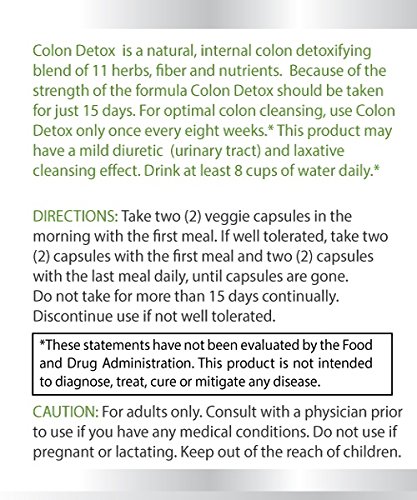 Colon Detox Herbal Cleanse is a very effective and strong blend that should only be taken for 14 days, and only once every 2 months. Using Colon Detox in conjunction with exercise and an healthy diet can help in achieving fitness/weight loss goals*. Produced in easy to swallow veggie capsules.