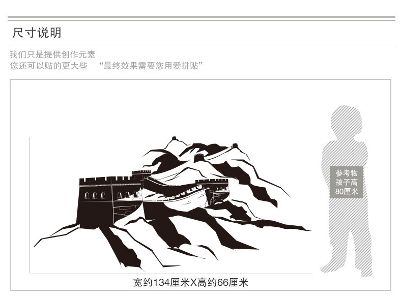 个性创意客厅沙发背景墙面装饰品中国万里长城剪影墙贴纸贴画自粘